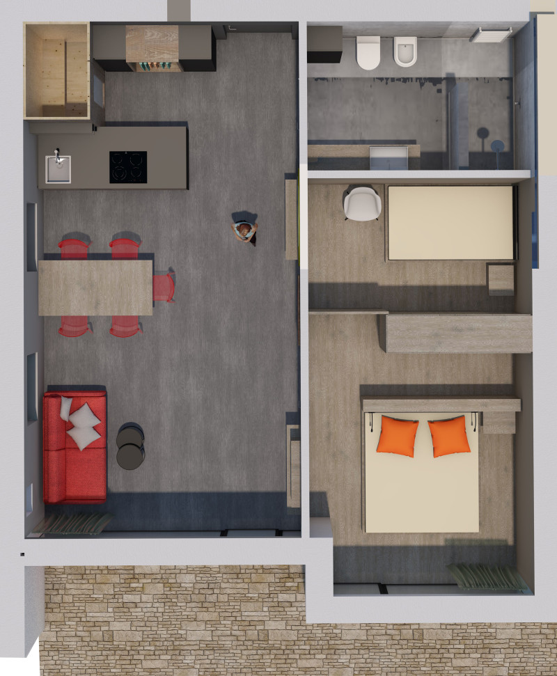 Fiery apartment with infrared sauna and views of the surrounding vineyards.